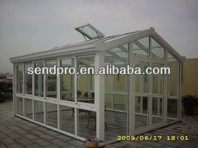 Een glazen veranda - aluminium frame met glasdak - heeft een chique uitstraling en staat garant voor een fraaie lichtinval.