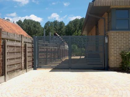 Voor en achter de poort neem de schuifpoort geen ruimte in beslag, enkel aan de zijkant(en) waar de deur openschuift. De montage van een schuifpoort kan de oplossing zijn indien u niet over de ruimte beschikt voor een openslaande poort. Met een vrijdragende schuifpoort van BG kan uw terrein snel en veilig afgesloten worden.